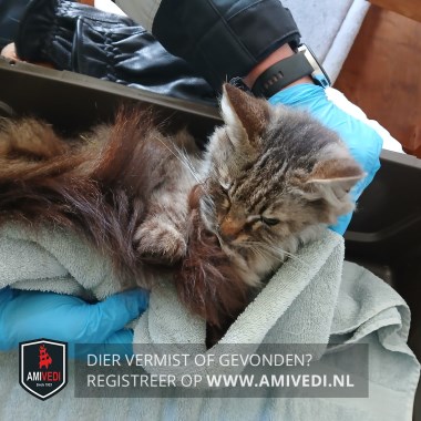 | Signalement | Bruin/ zwart gemarmerd. Hals, buik is licht bruin/ beige. Helaas een niet geregistreerde chip. |