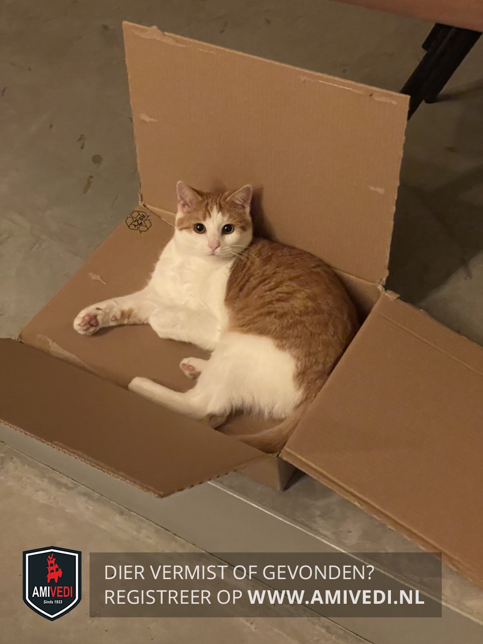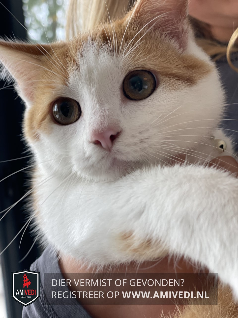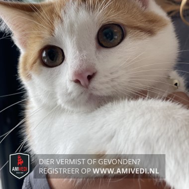| Signalement | Wit met cypers rood op kopje, rug en staart, enkele rode plekjes op pootjes. |
