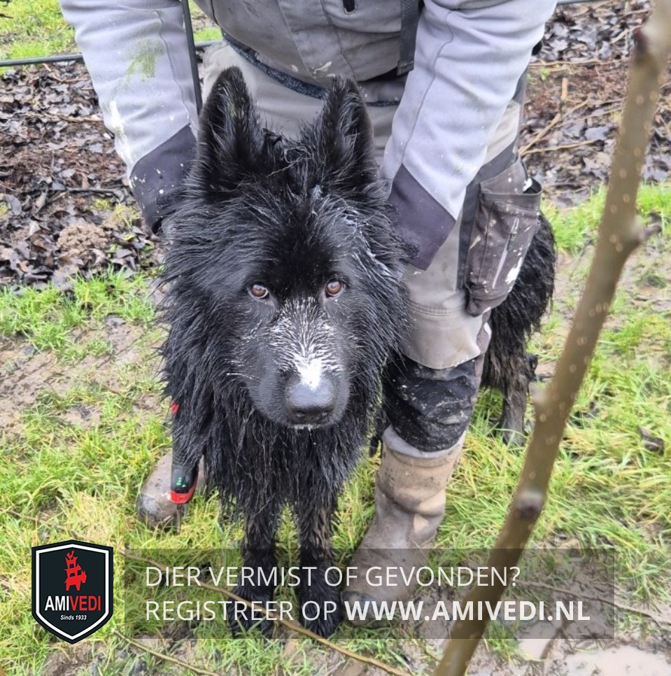 | Signalement | Zwarte langharige herder, spitse oren kleine lichte vlek op de neus. |
