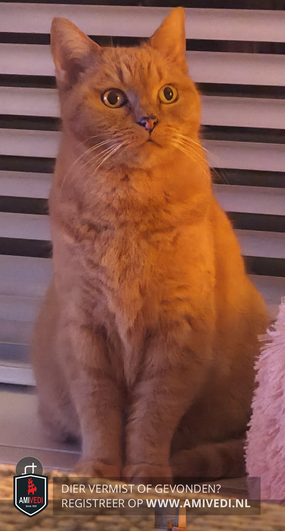 | Signalement | Cypers rood oranje gestreepte poes. |