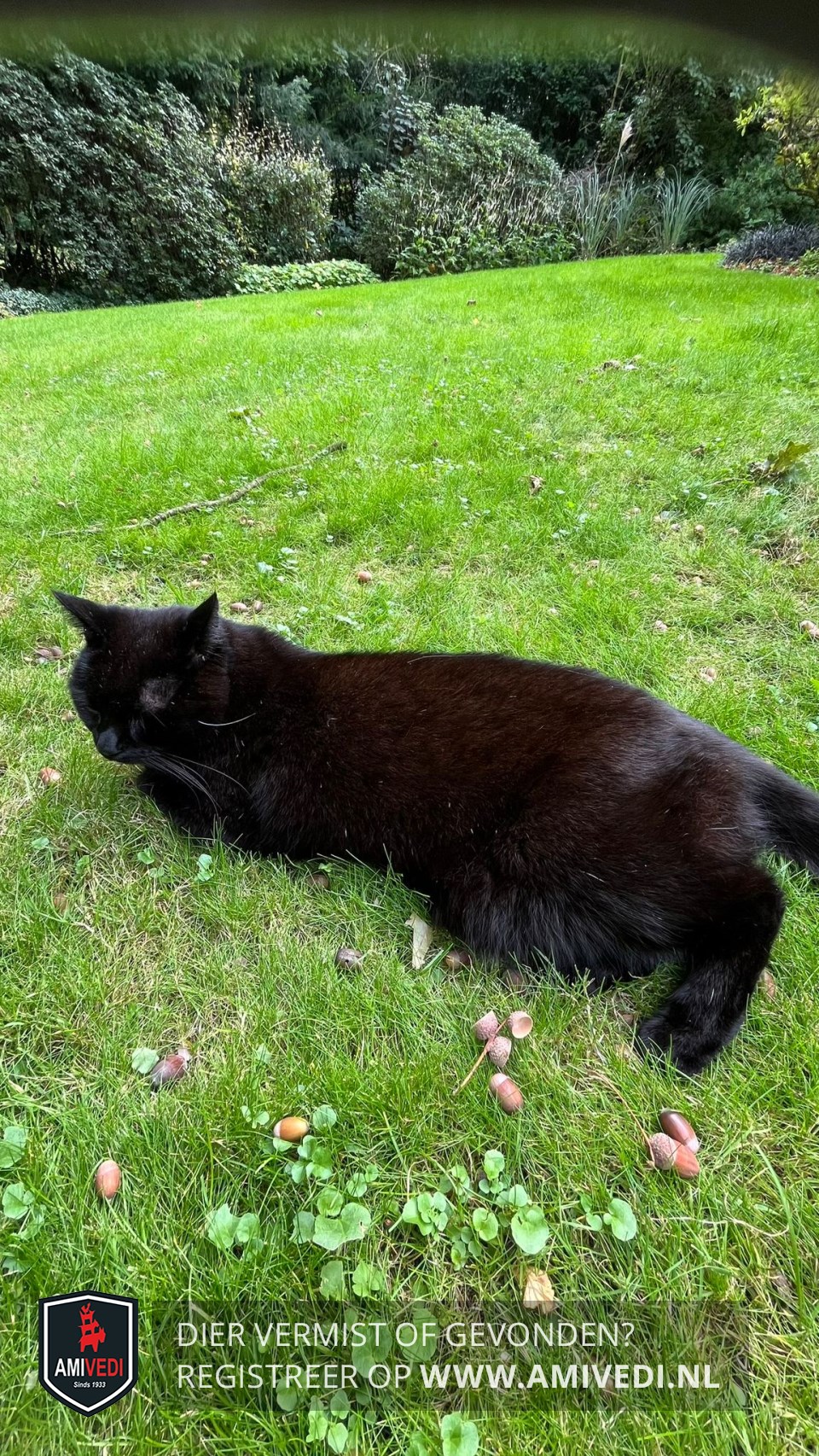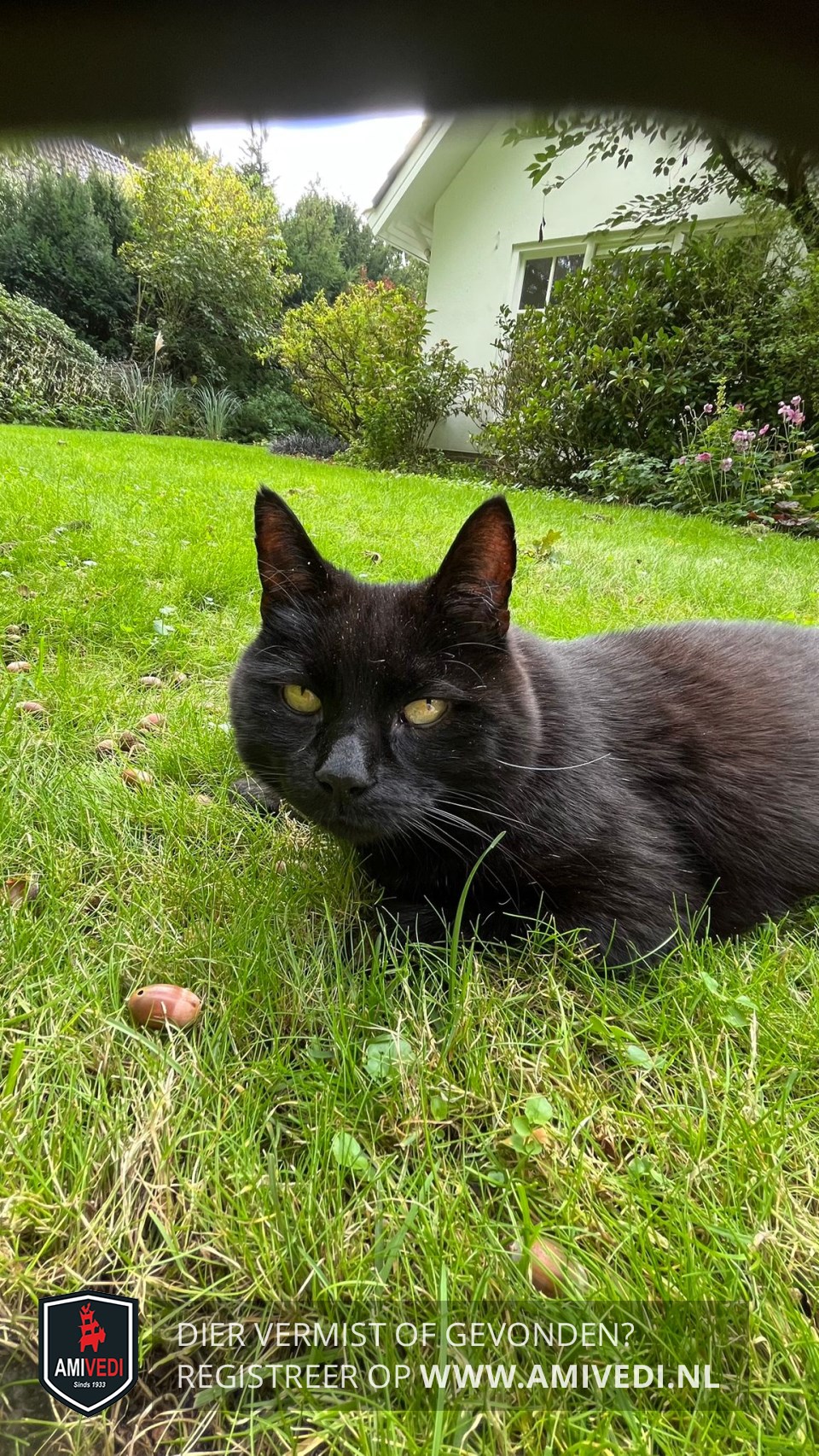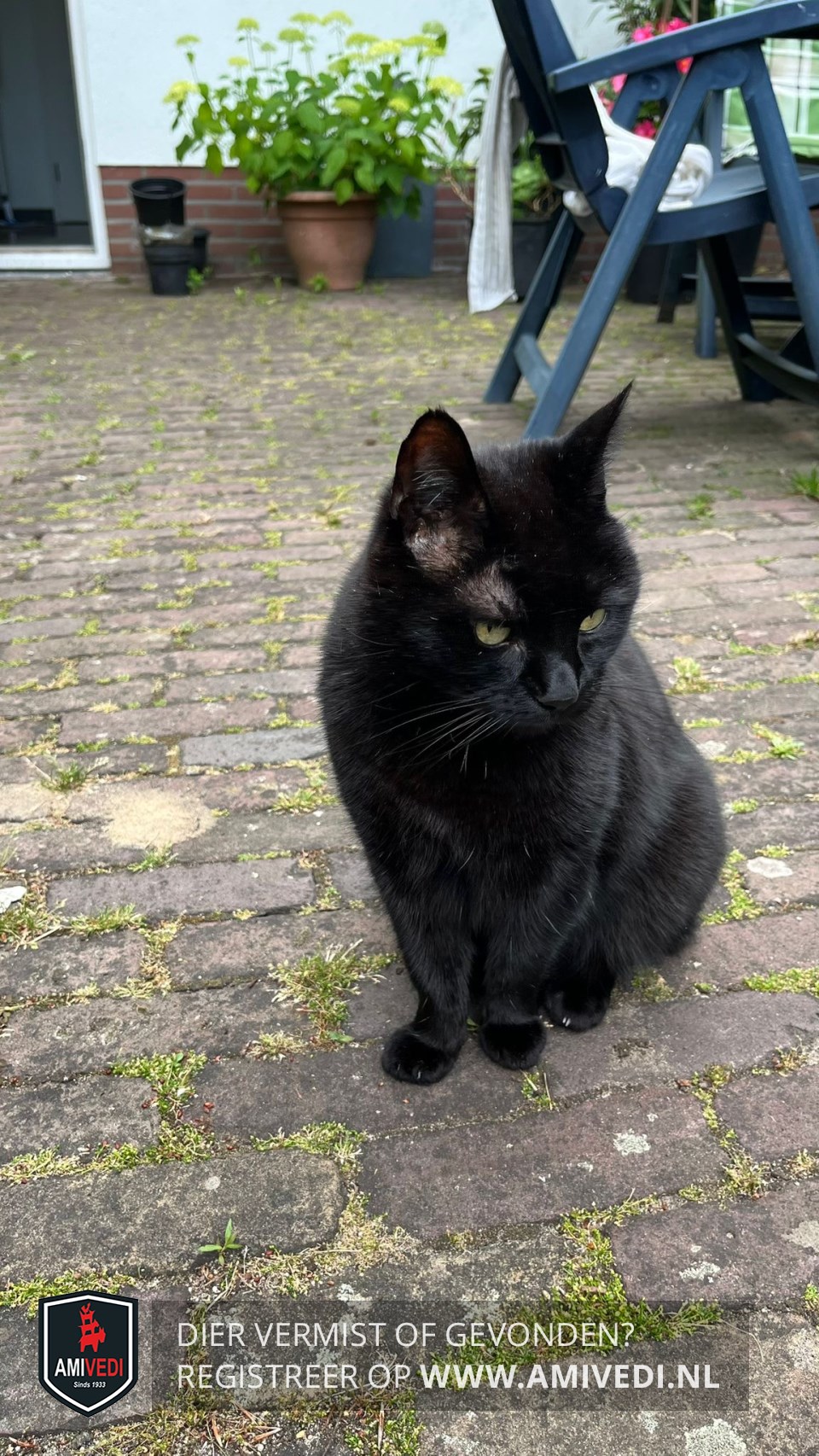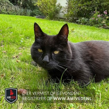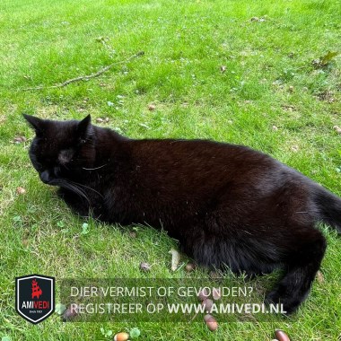 | Signalement | Zwarte kater. Enkele witte haren op de borst. Gemiddeld van grootte (3,5-4kg) |