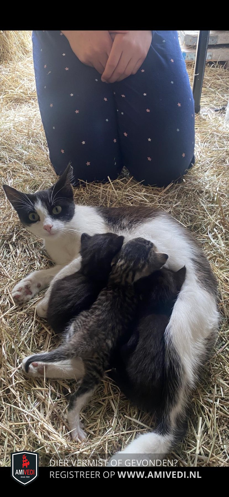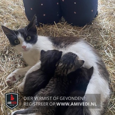 | Signalement | Veel wit aan de onderkant, een wit snoetje, witte borst, buik en witte poten. Zwart om de ogen, oren, achterkant kopje en een zwarte rug. |