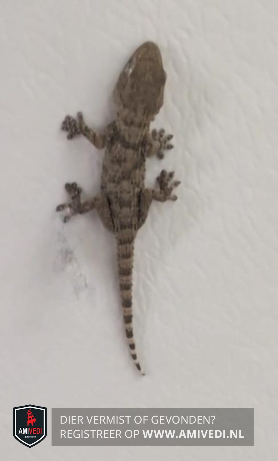 | Signalement | Muurgekko Bruin met een donkerbruine tekening en ringetjes rond de staart. |