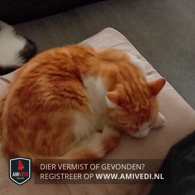 | Signalement | Cypers rood-oranje gemarmerd,witte snuit, kin, bef, borst, buik en poten, in en bij linkeroogje zit vaak wat viezigheid ivm tranen en vroeger oogprobleem. |