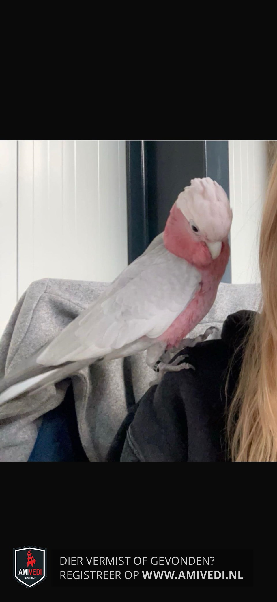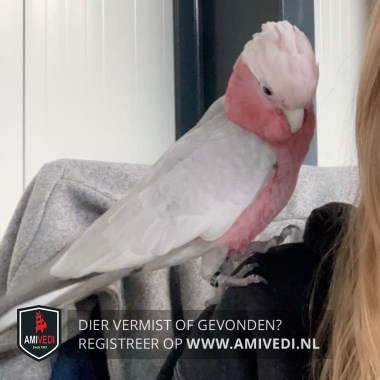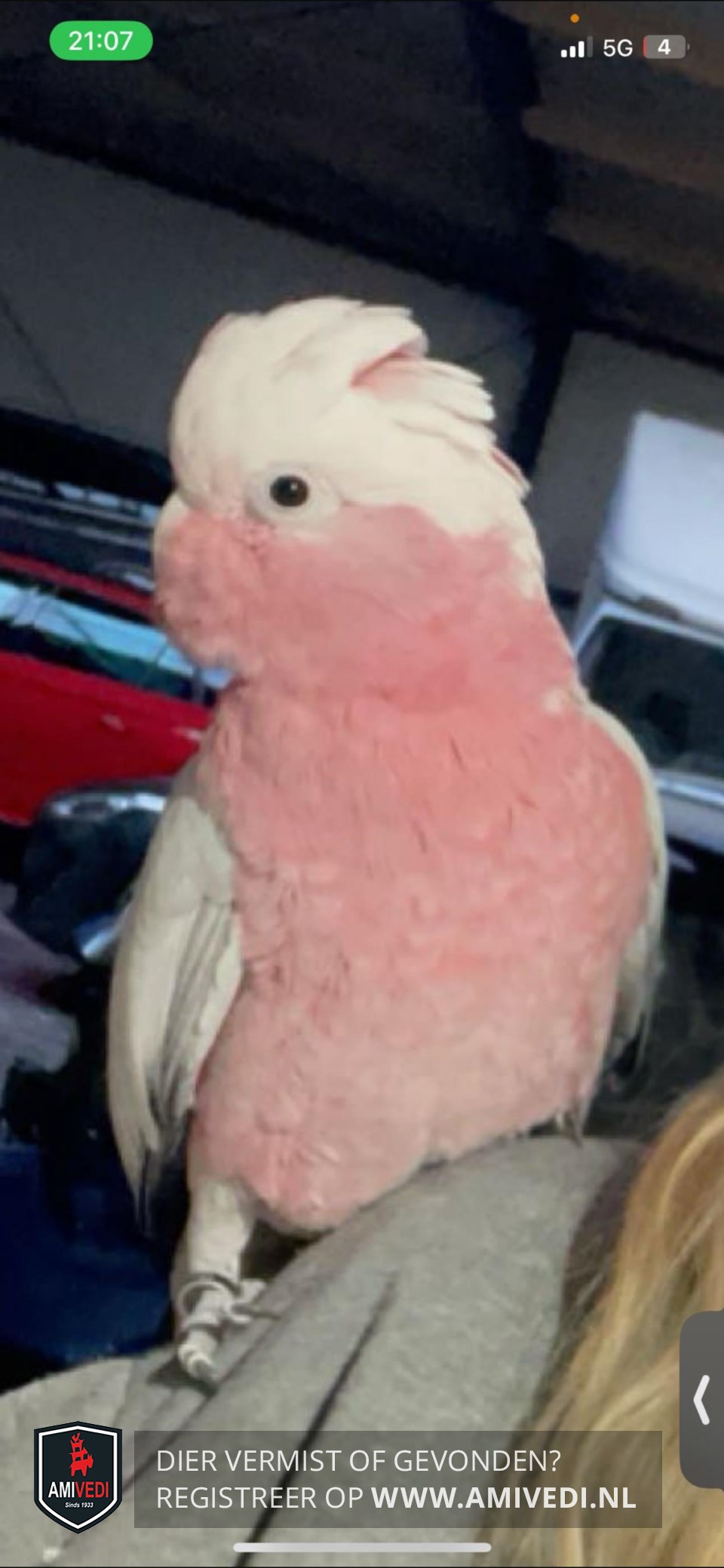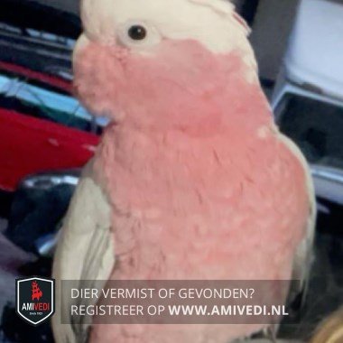 | Signalement | Kaketoe. Lichtroze bovenop de kop. Wangen, nek en borst roze. Vleugels lichtgrijs. |