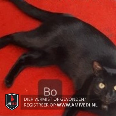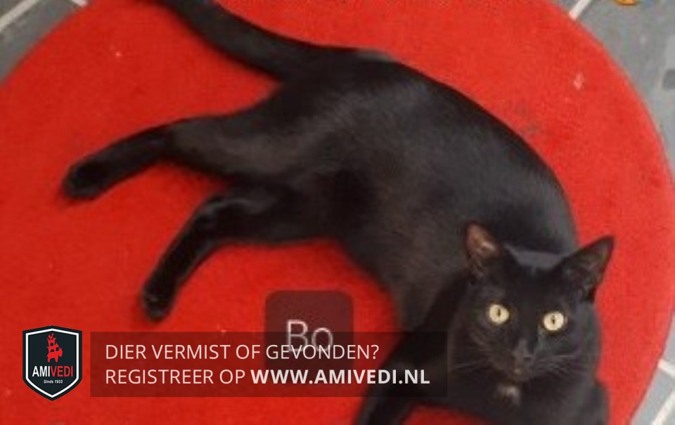 | Signalement | Zwarte kater met op de borst een klein wit plekje. Aanhankelijk. |