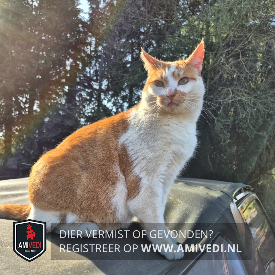 | Signalement | Rood wit cypers rood bij de oren, witte neusbrug, rood langs de neus, witte poten, witte bef, rode rug, loopt hier al jaren rond maar sinds een paar maanden dagelijks, zichtmelding. |