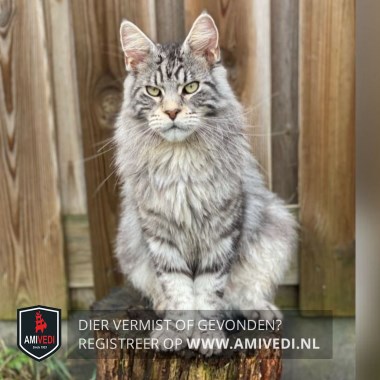| Signalement | Cypers grijs , licht beige kin, goud/gele ogen, licht beige buik, staart is donker grijs. |