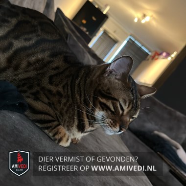 | Signalement | Bengaal in wildkleur, rozetten over de rug, bruin zwart gestreepte pootjes en met een witte kin. |