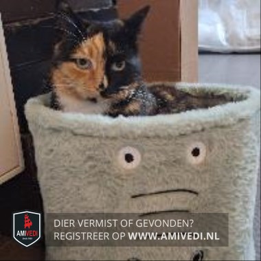| Signalement | Van onder lapjeskat, op de rug meer schildpad. Heeft een oranje driehoek op rechterzijde kop met een rechte lijn tussen ogen. Witte bef. |