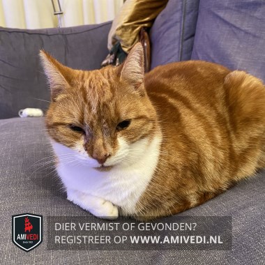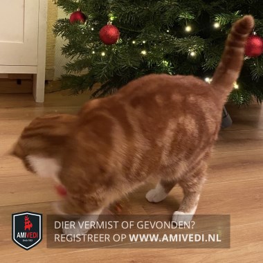 | Signalement | Rood/oranje gemêleerd met wit Cyperse strepen op haar kop. Op neus zitten rechts net iets langere haartjes. Witte wangen, witte borst. Aan voorpoten witte sokken en aan achterpoten witte voetjes. Cyperse strepen op haar staart. |