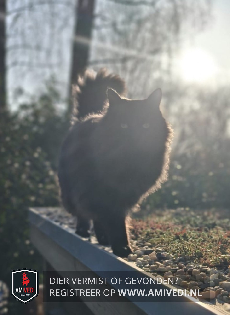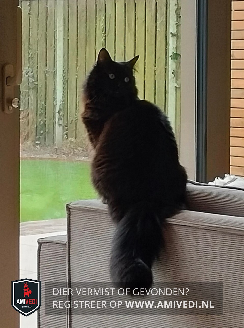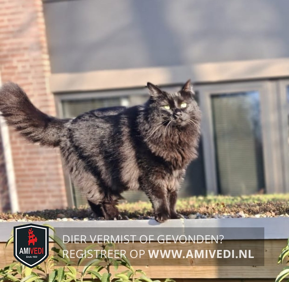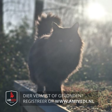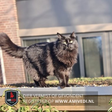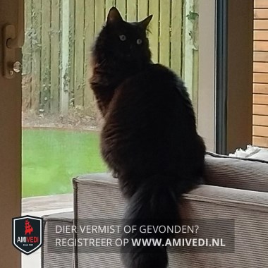 | Signalement | Langharige zwarte poes met een dikke staart. |