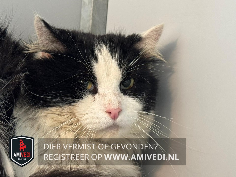 | Signalement | Langharige kat wit met om de oren en naast de ogen zwart. Zwart op zijn rug en een zwarte staart, |