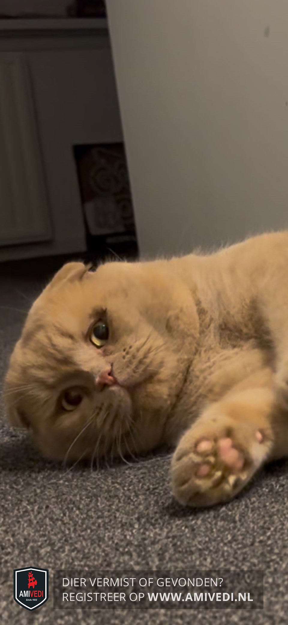 | Signalement | Ace is een scottish fold met gevouwen oren. Kleur beige. 3 jaar oud en voor het laatst gezien in de buurt van de Klaproostraat Arnhem. |