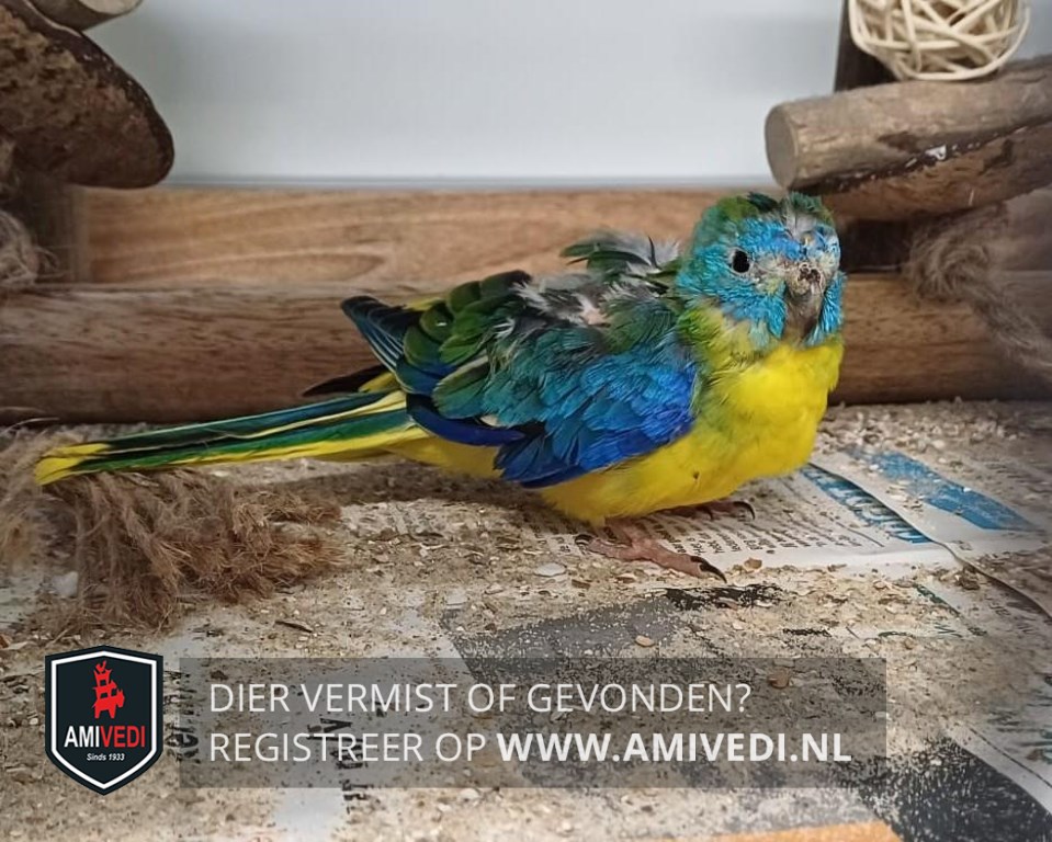 | Signalement | turquoisineparkiet Turqoise/blauw maskertje, gele buik, azuurblauwe vleugeltjes, groene rug, geel groene staartveren. |