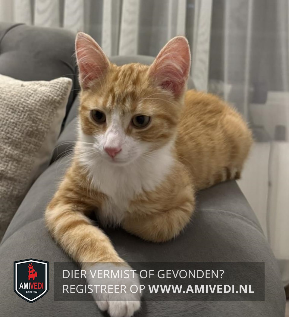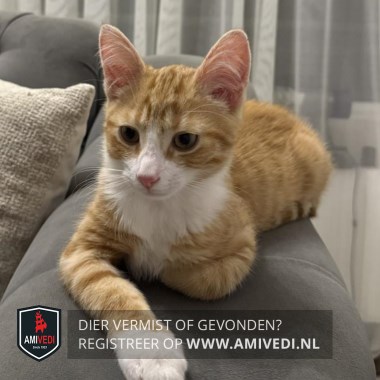 | Signalement | Cypers rood/oranje gestreept met wit, witte neusbrug, wit bekje en borst, rechtervoorpoot wit voetje |