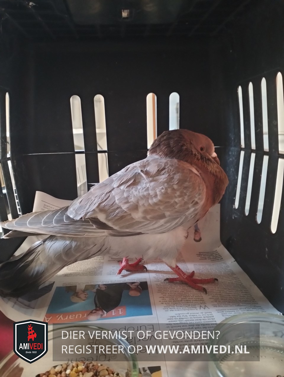 | Signalement | Sierduif/Kroppers, grijze kop, donkere staart, vleugels grijs en wit, borst/poten wit |