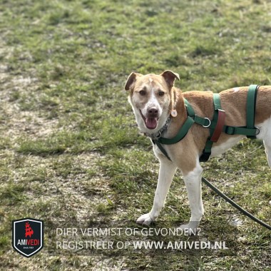 | Signalement | Wit met bruin, grote hond, wit op snuit, wit op voorpoten, wit op buik, bruin op rug, Stella mist een stukje oor en heeft scheve achterpoten, is ook van vooral voor mannen. |