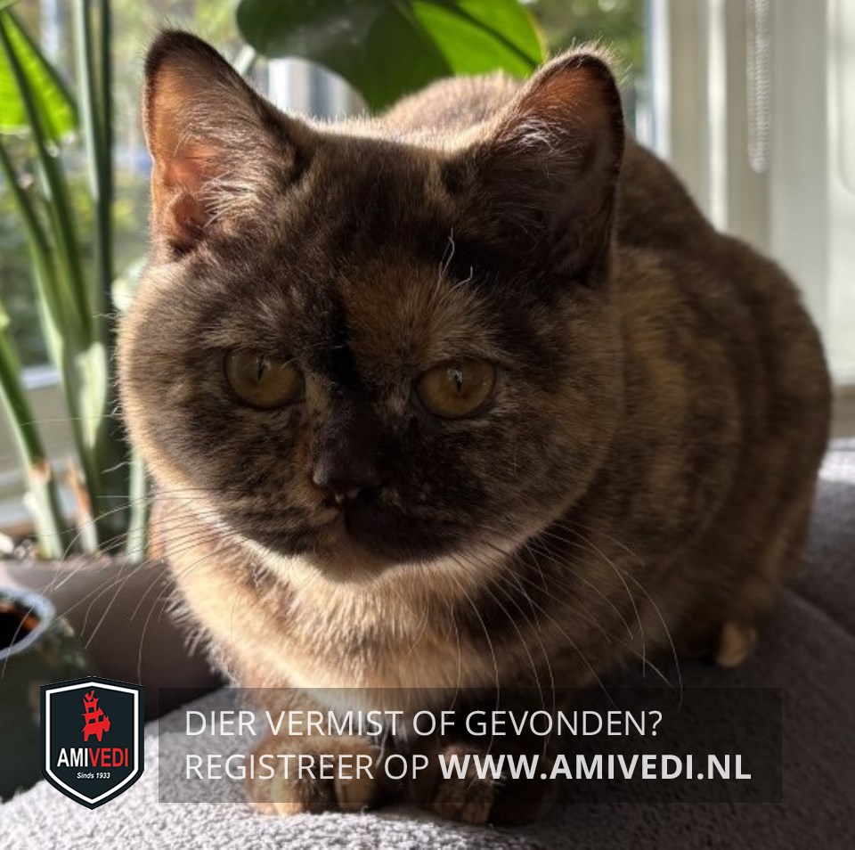 | Signalement | Brits korthaar. Schildpad. Bruin met rood gemêleerd. |