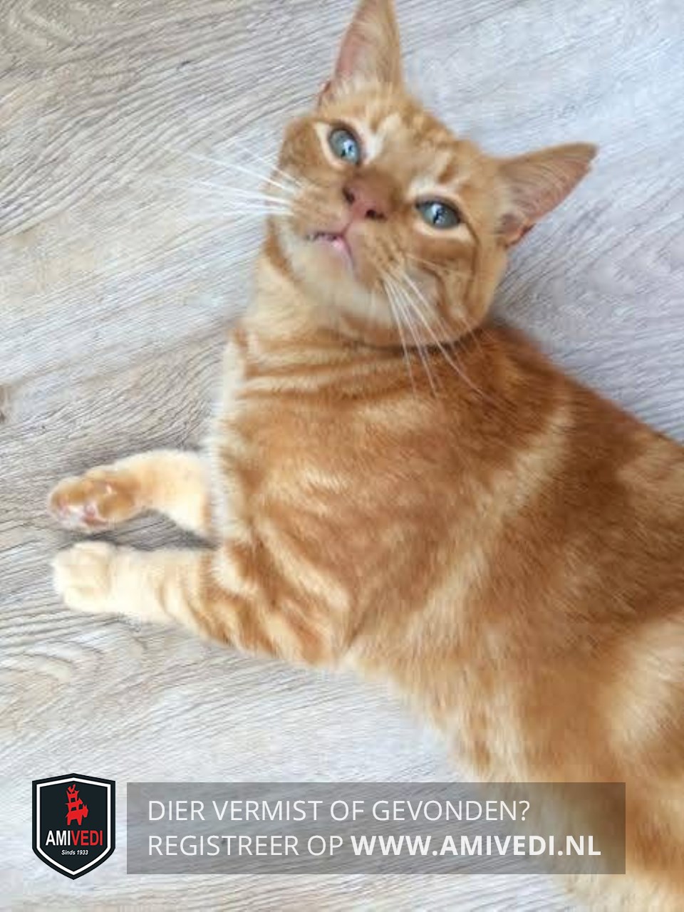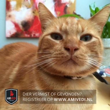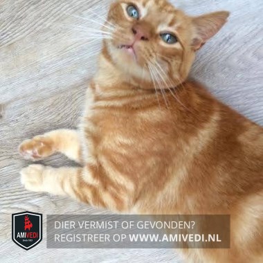 | Signalement | Cypers rood wit gestreepte kater met een hapje uit het rechteroor. Beetje wit aan de kin en beetje wit aan de bef. Voor de rest geheel rood cypers gestreept. |