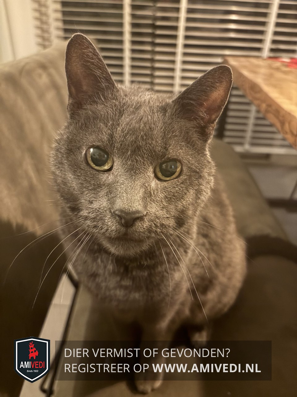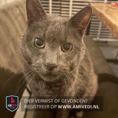| Signalement | Grijze kortharige kater |