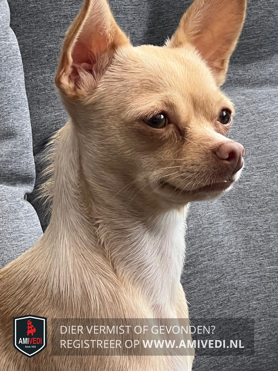 | Signalement | Roze neusje vacht beige met klein beetje wit op de borst en naast haar neusje |