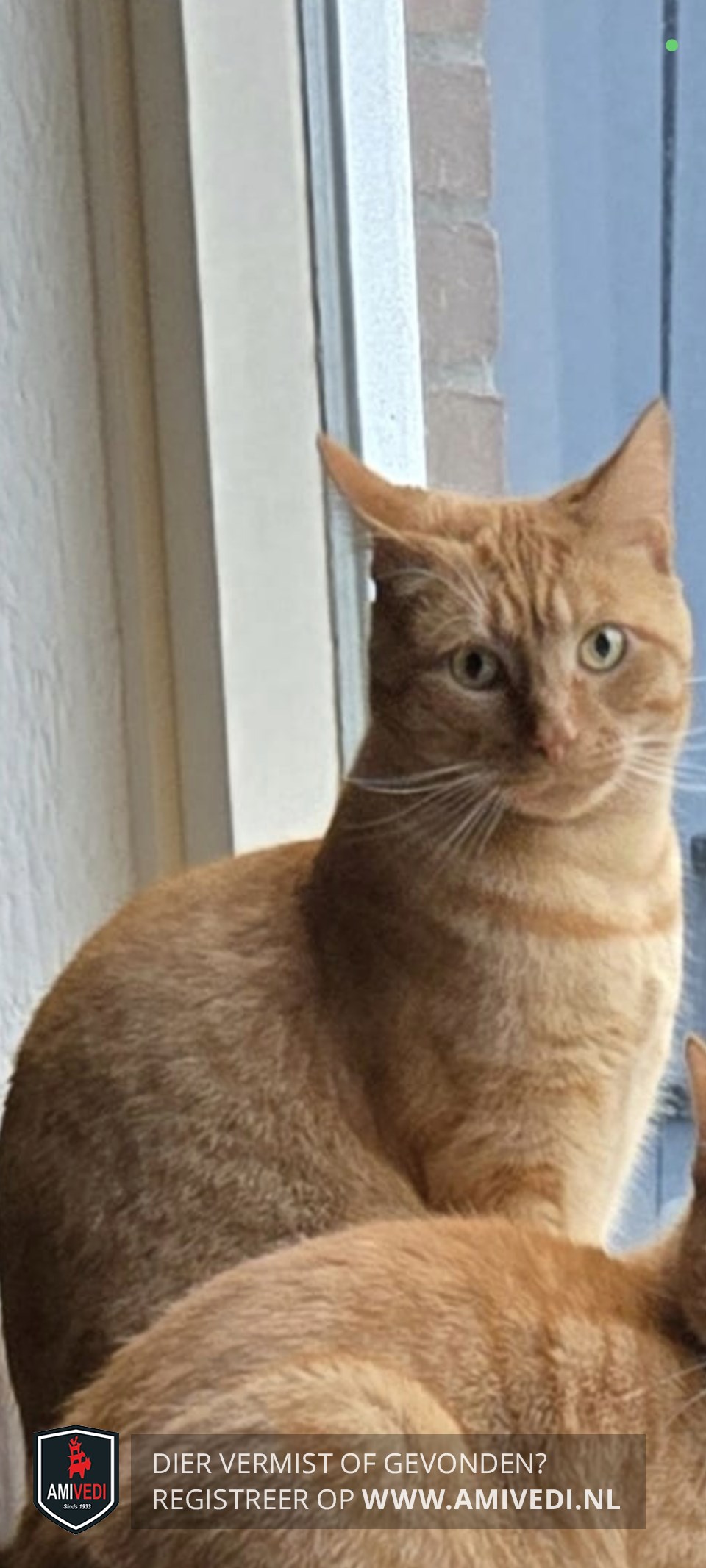 | Signalement | grote oranje kat met hangende buik, gele ogen, schuw tegen onbekenden |
