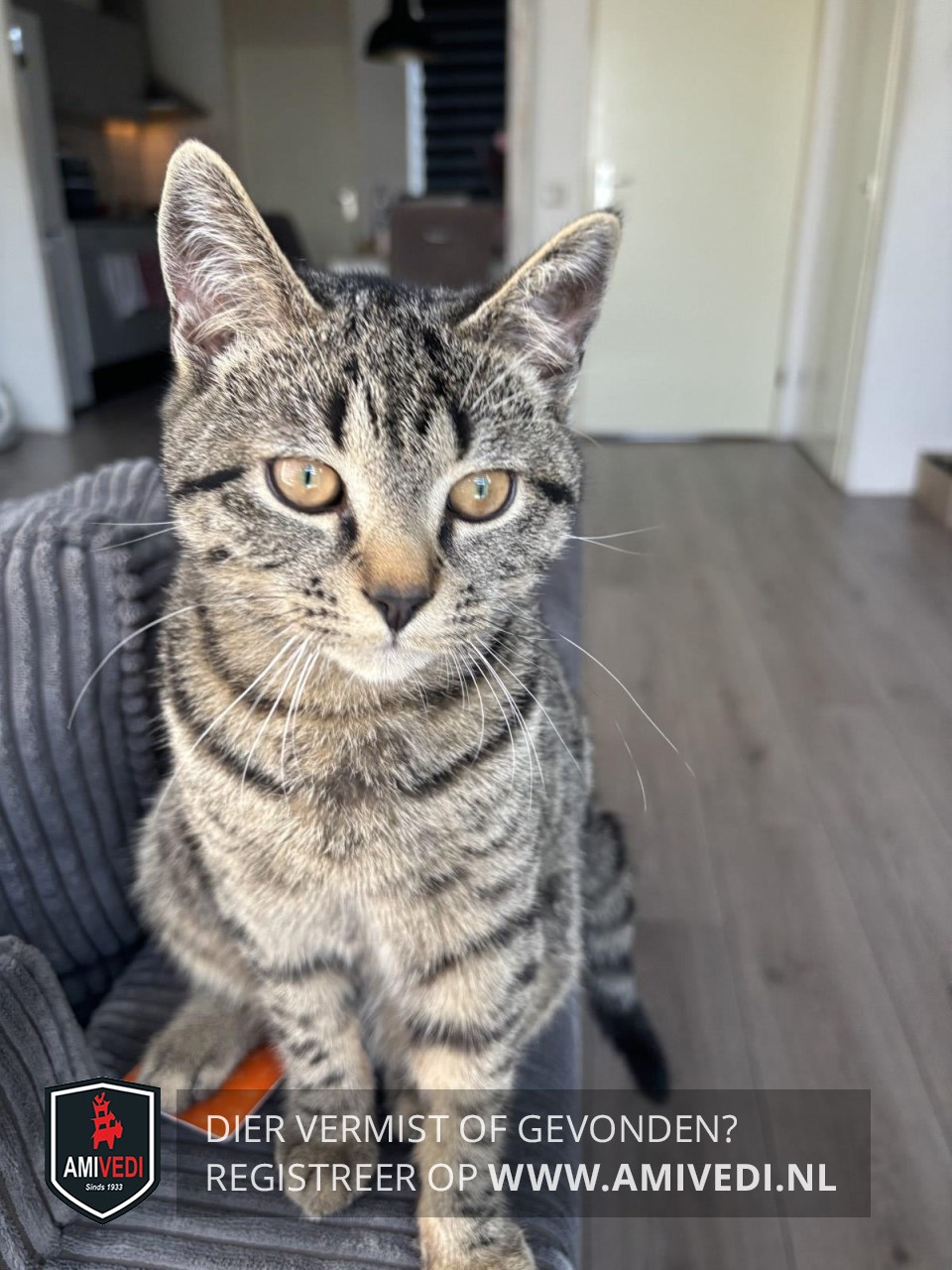 | Signalement | .Cypers grijs bruin gestreept met donkerkleurige neus en zwarte staartpunt. |