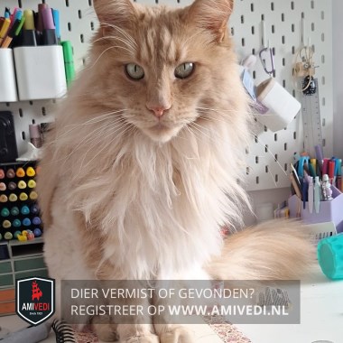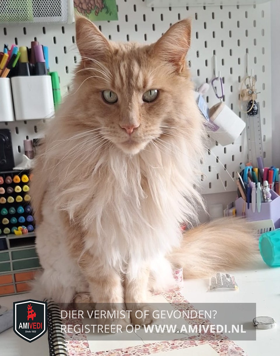 | Signalement | Het is een langharige kat in de kleur creme rood. Op zijn kopje heeft hij een beetje een cyper tekening |