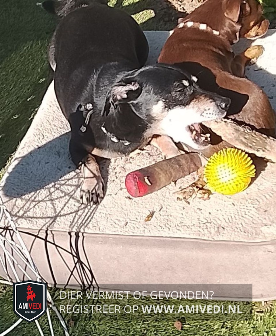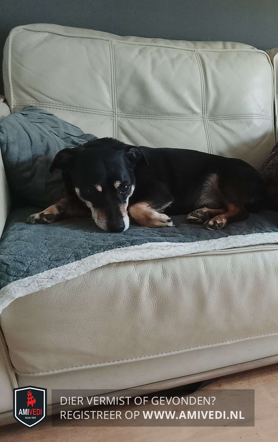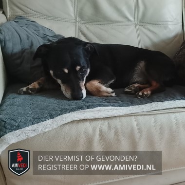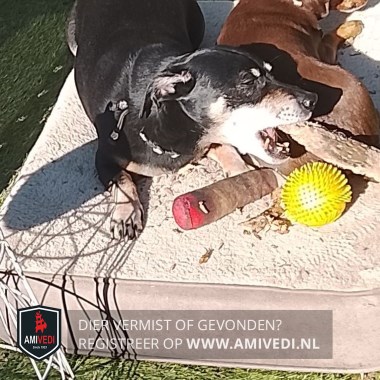 | Signalement | Kleine Jack Russel, black/tan, bruine pootjes, witte vlekjes boven beide oogjes, lichte snuit. |