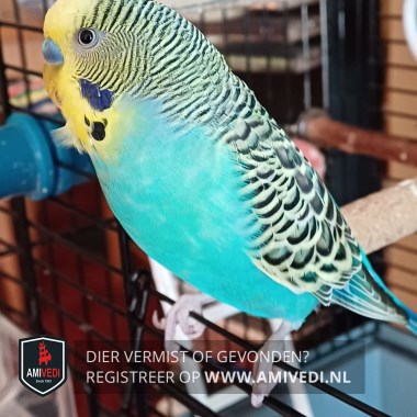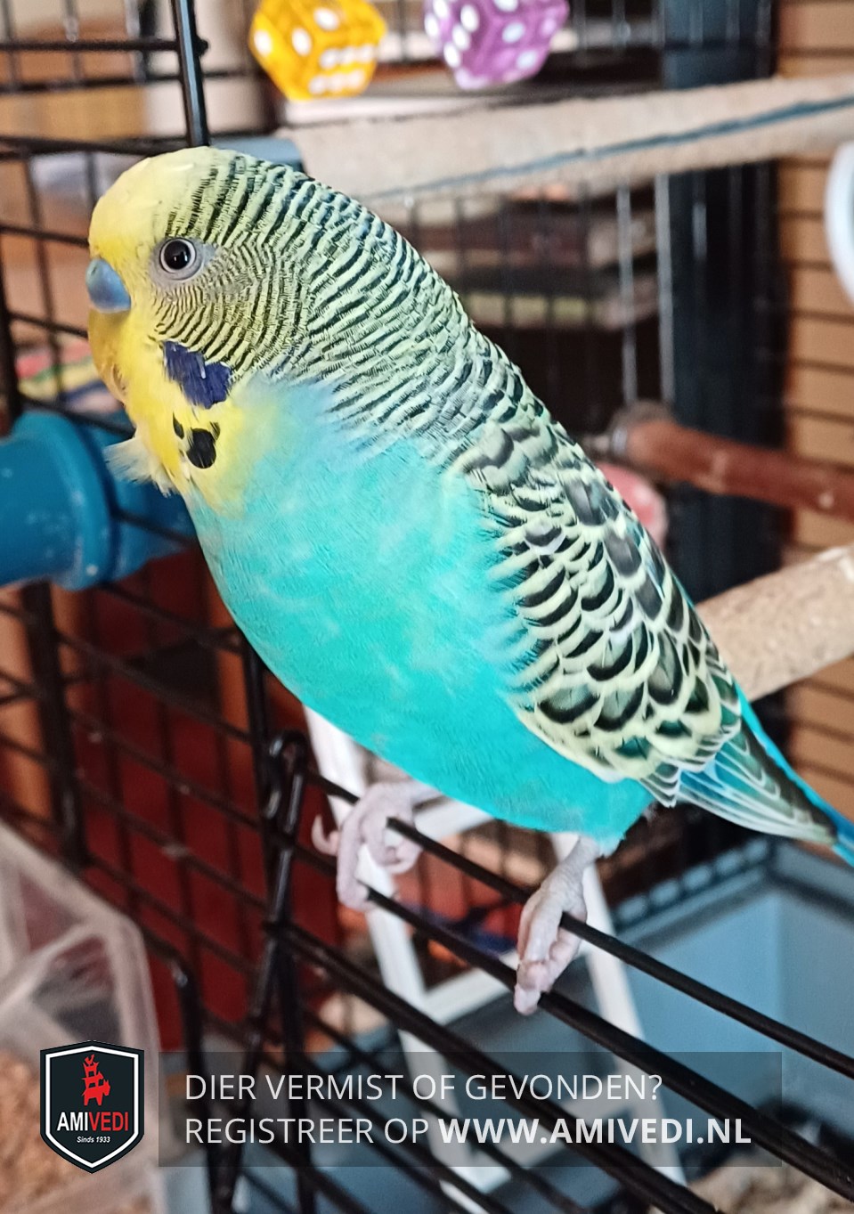| Signalement | Regenboog parkiet, gele kop, turkoise lijf en geel zwarte vleugels. |