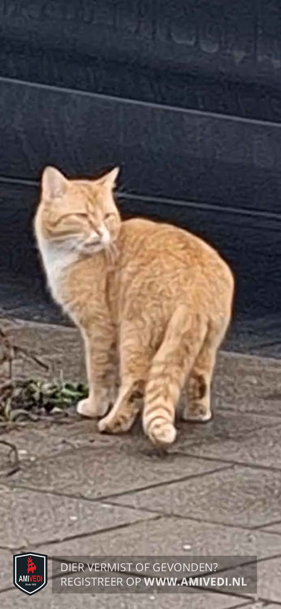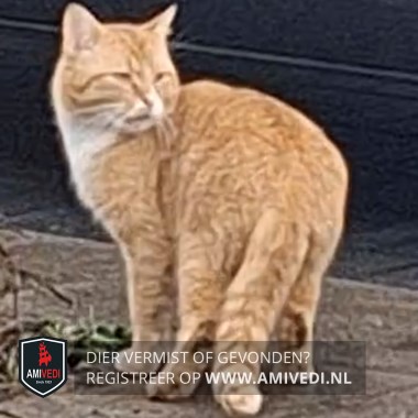 | Signalement | Rood getijgerde kat, wit op en rond de neus, witte bef. |