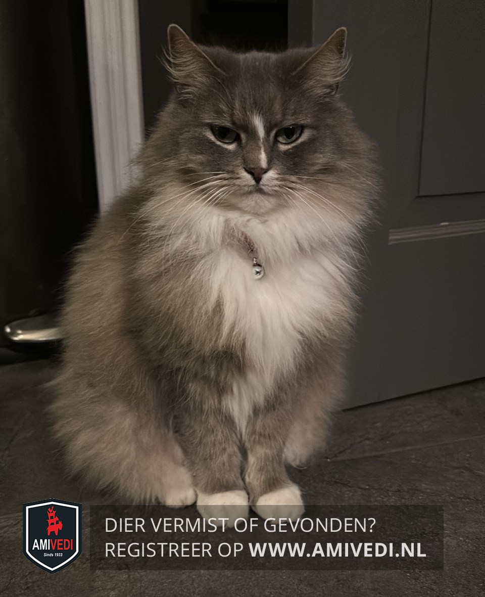 | Signalement | Zachte donzige licht grijze vacht. Ze heeft een witte kraag die naar haar buik en naar beneden loopt. Een witte lange vlek op haar neus en witte voetjes/teentjes. |