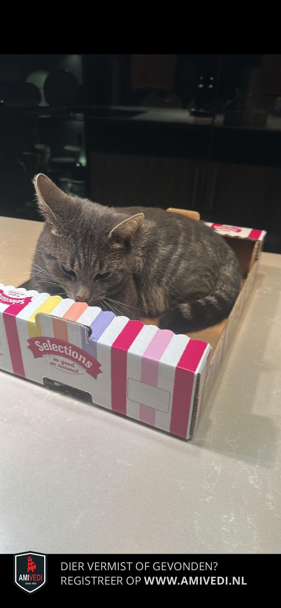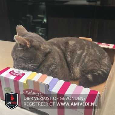 | Signalement | Cypers grijs met een beetje wit. Witte snoet en grijzige neus. Ronde grote oren. Stukje zijn staart af die eindigt in een zwarte punt |