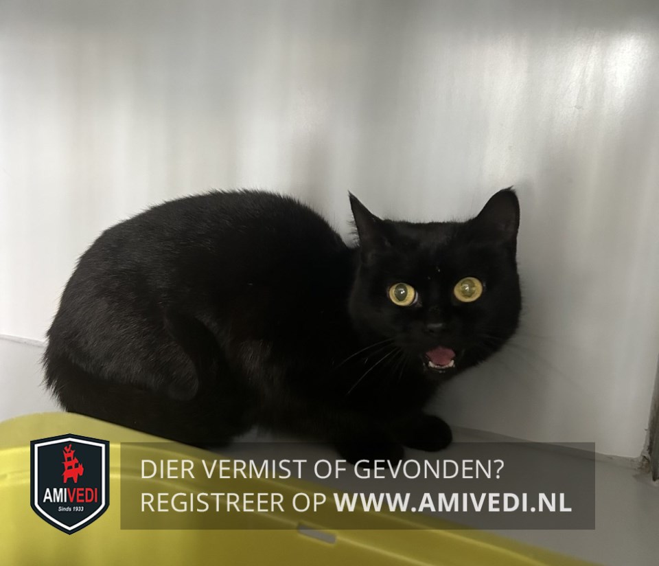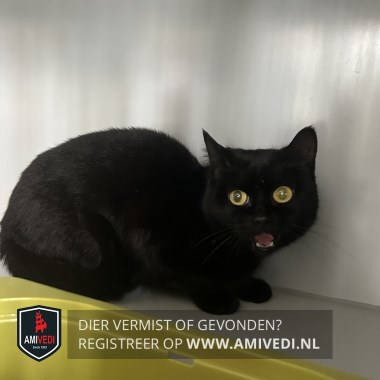 | Signalement | Geheel zwarte poes, ronde oogjes. |