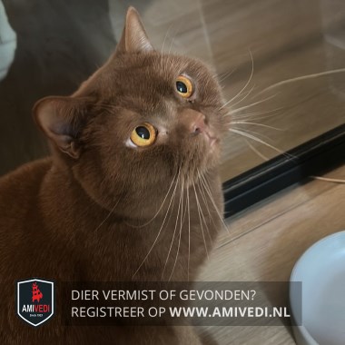 | Signalement | Geheel bruin met gele ogen en witte snorharen. |