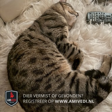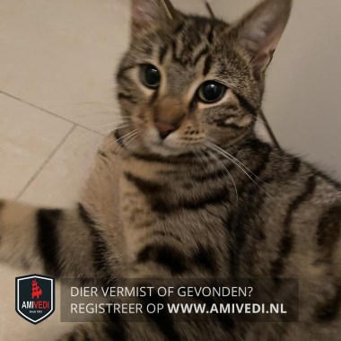 | Signalement | Bengaal met Cypers bruin/zwarte/grijze vachte, kop cypers bruin/zwart, bruin neusje, iets licht bij het bekje, witte snorharen, rug en flanken bruin/grijs en zwart gevlekt, poten cypers grijs/zwart gestreept, zwart/grijs gestreepte staart |