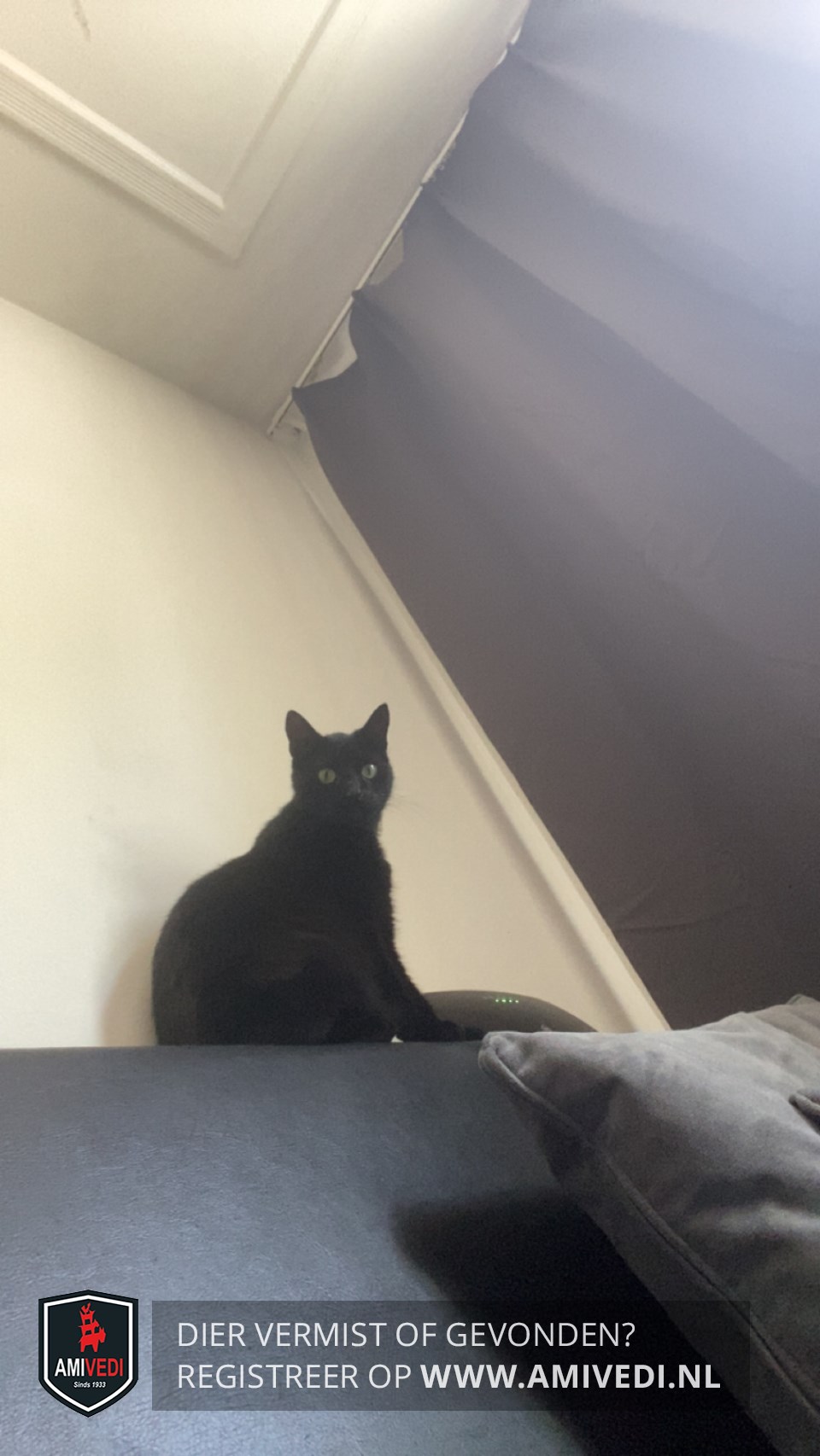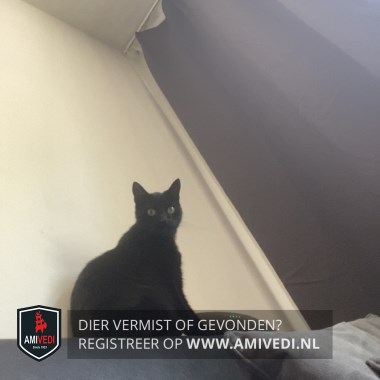 | Signalement | Vrijwel geheel zwart met een paar witte haren bij zijn borst |