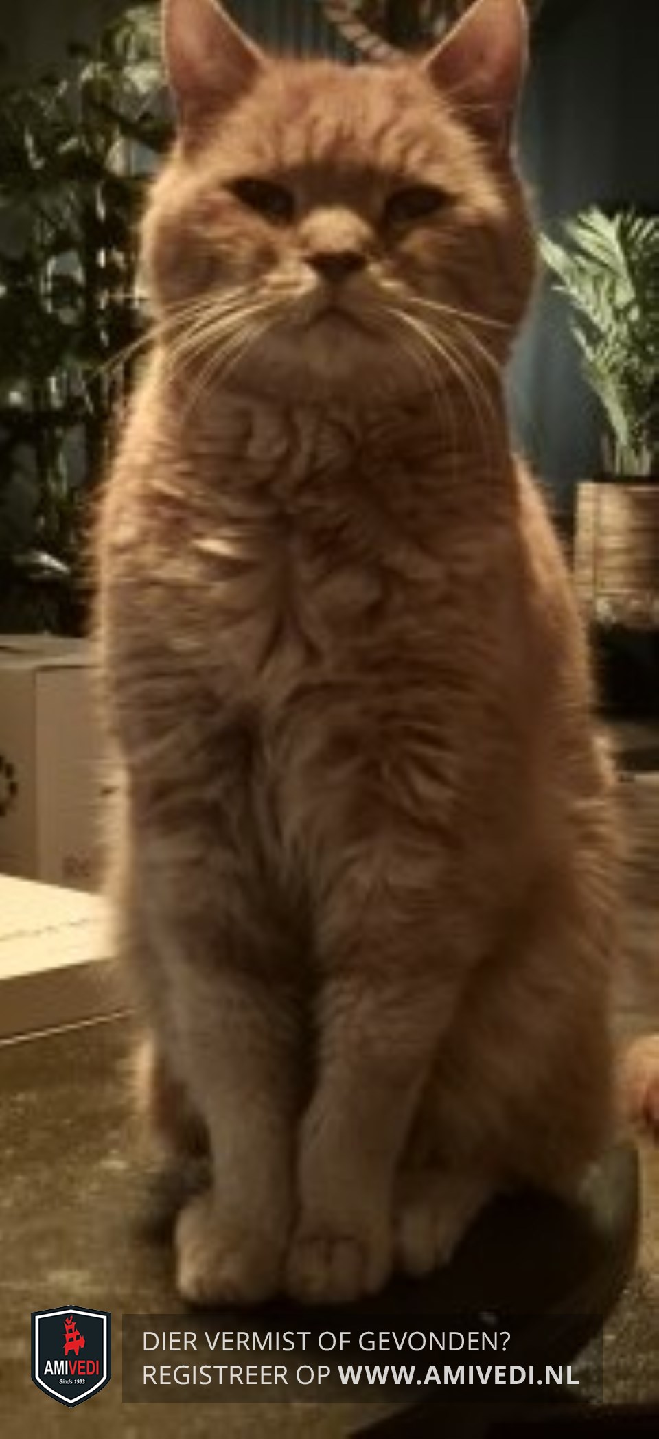 | Signalement | Magere rood/oranje oudere kat met puntige oortjes iets lichter gekleurde pootjes. |
