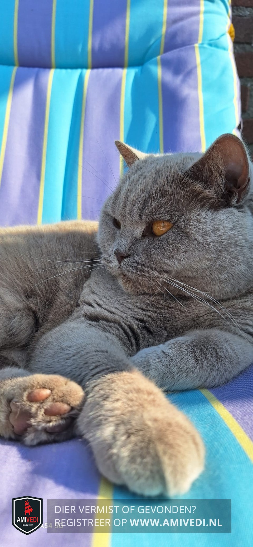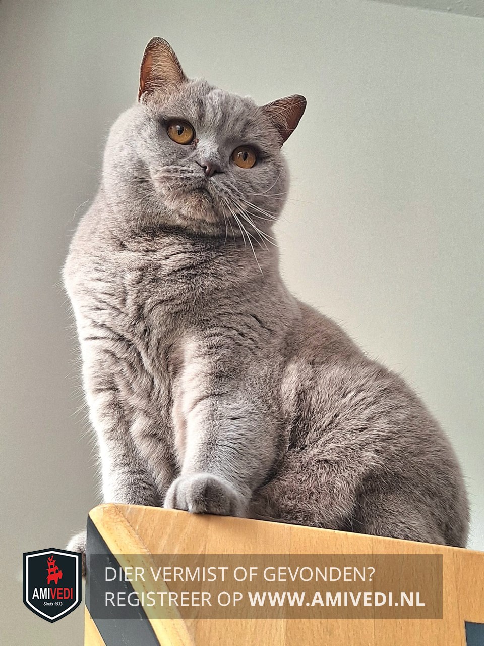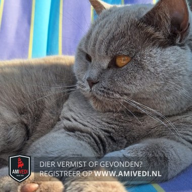 | Signalement | Brits Korthaar, licht grijs ( lilac). Amberkleurige ogen. |