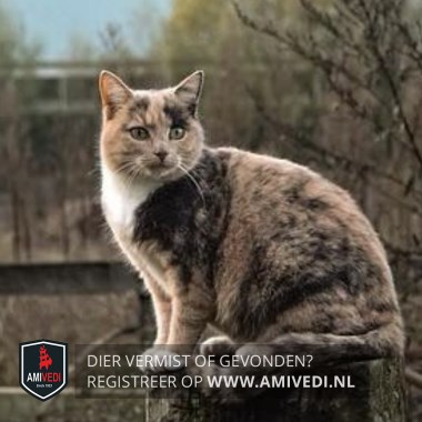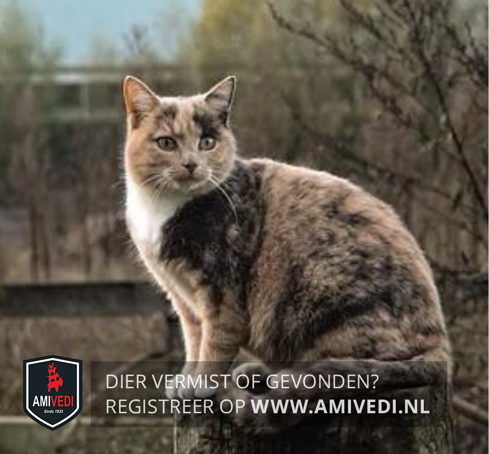 | Signalement | Scildpad poes, Driekleur. Cypers gevlekt kopje, Rood en zwart. Witte bef. Zwart en rood gemeleerd lijf. Witte voetjes. |