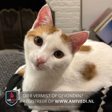 | Signalement | Witte kater met rode vlekken bij beide oren en op de rug. Luistert naar de naam Jaap. Moeilijk op te pakken. |