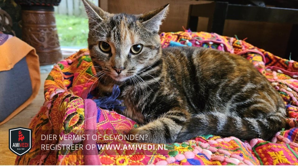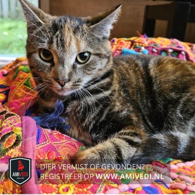 | Signalement | Volledig cypers bruin-zwart-rood/oranje. Marisol is een poes met een verlamming aan een van haar voorpoten. Dit is duidelijk zichtbaar maar het hindert haar niet. |