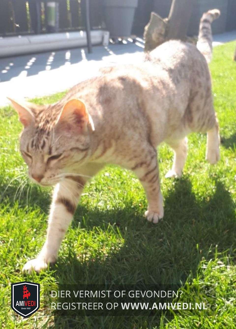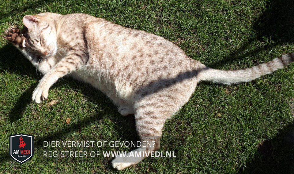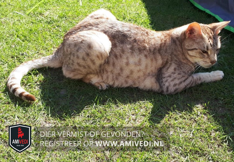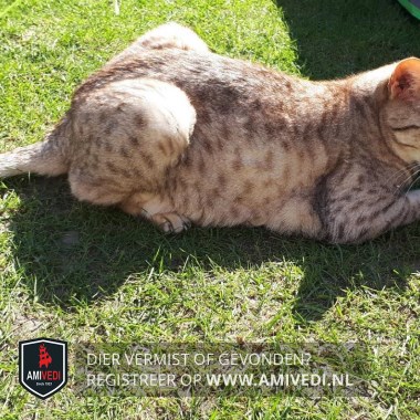 | Signalement | Cypers beige met donkerbruine korte streepjes patroon, Door gebits problemen wat aan de magere kant, kat op leeftijd. |