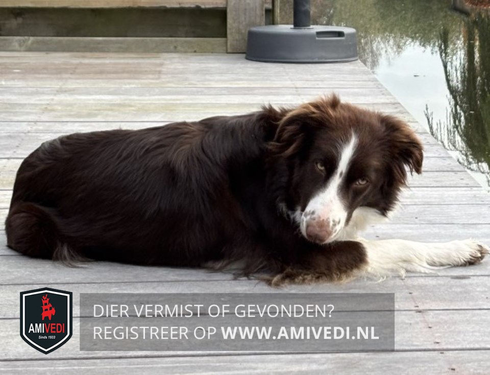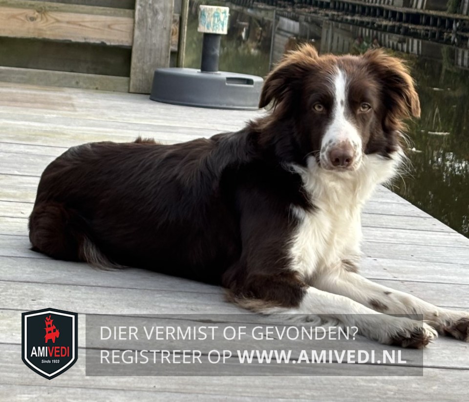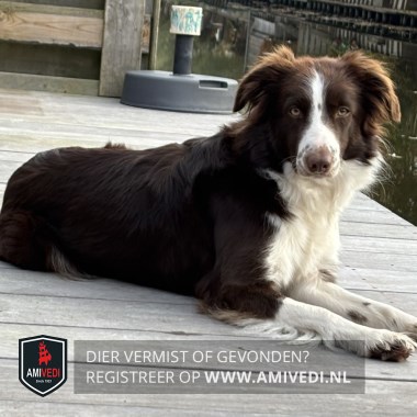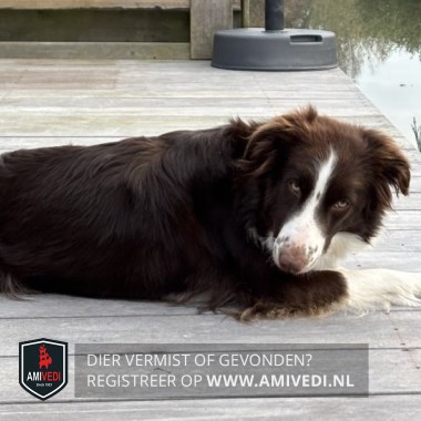 | Signalement | Zoë is een bordercollie van 2 jaar. Een teef. Ze is bruin wit gevlekt |