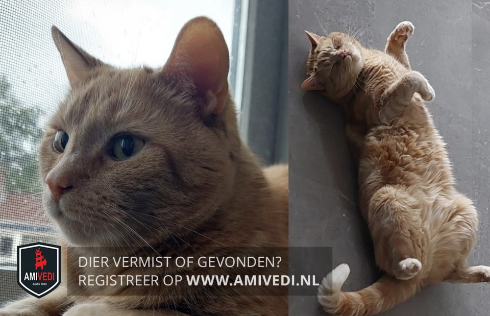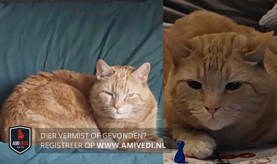 | Signalement | Cypers rood/oranje gestreept met wit, bovenkant bekje iets wit, witte kin, achter poten witte voetjes, voorpoten ook met wit, staart rood/oranje gestreept met witte staartpunt |
