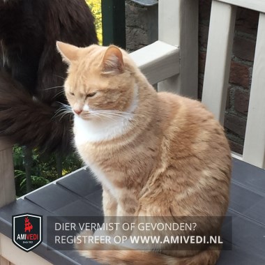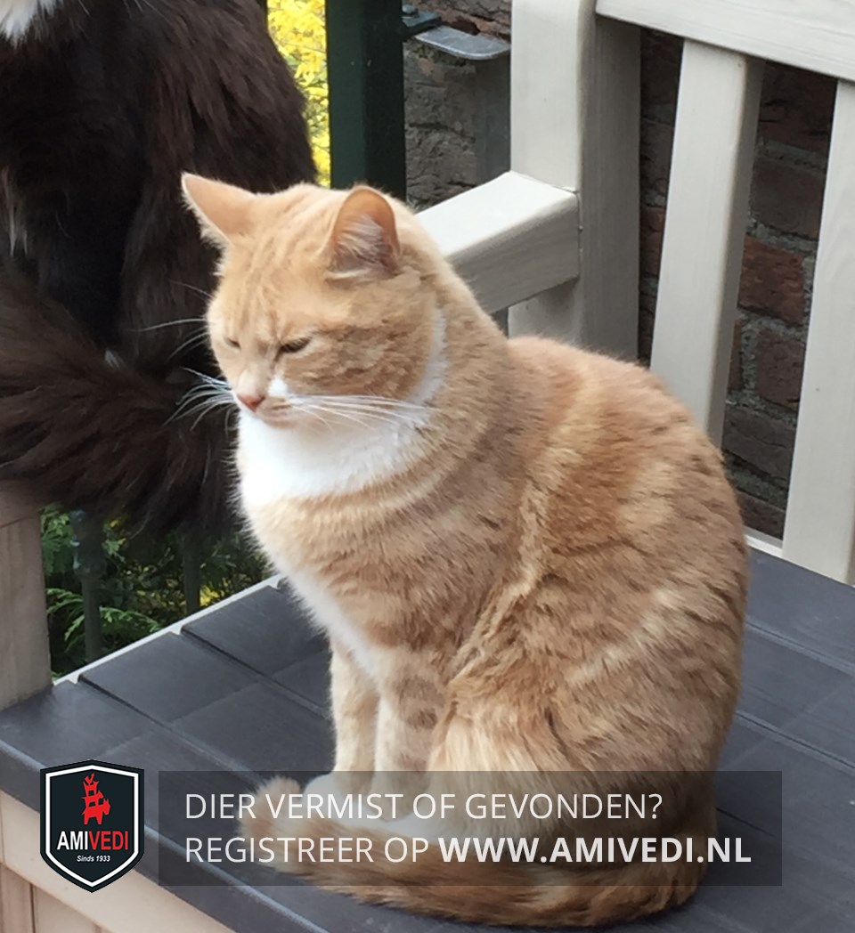 | Signalement | Rood/wit. Cypers. Hoofdzakelijk Rood. Witte snoet met rood vlekje. Witte kin, bef en borst. Witte voetjes voorpoten. Wit uiteinde achterpoten. Rood cyperse kop, rug en staart. |