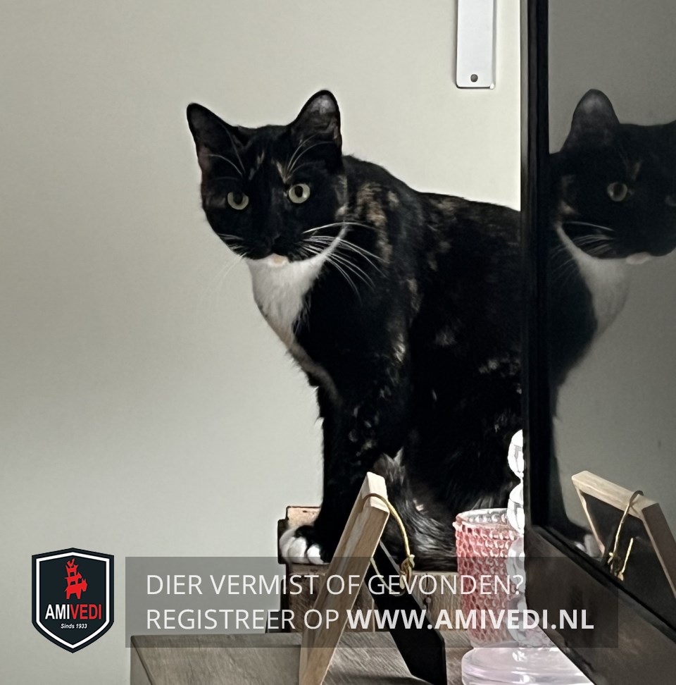 | Signalement | Zwart, met op de rug beige/bruine vlekken. wit sikje, borst en voetjes. |