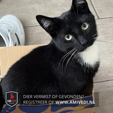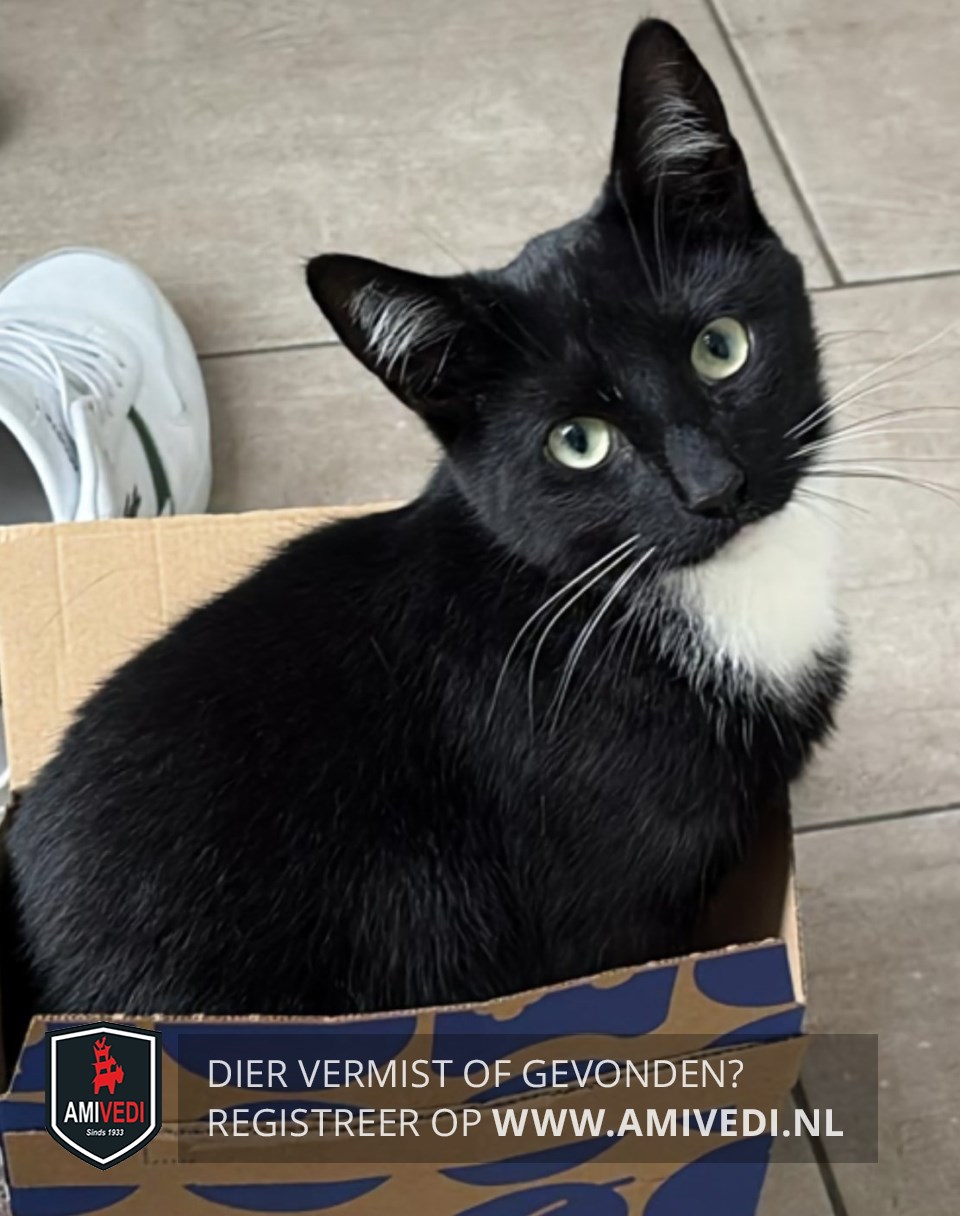 | Signalement | Zwart met een wit befje. Witte haren in de oren. Witte snorharen. |