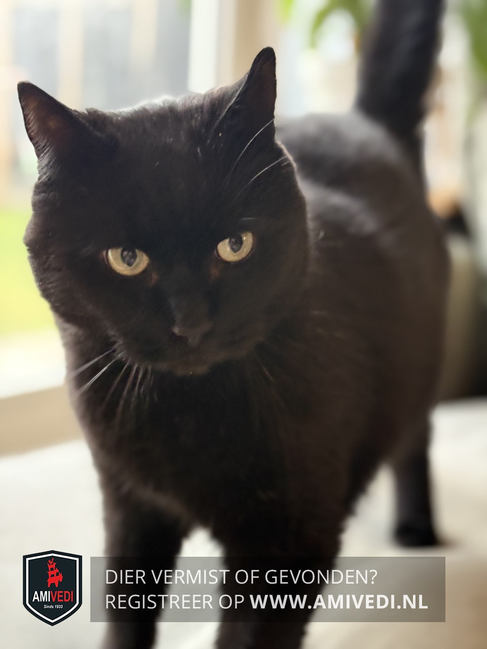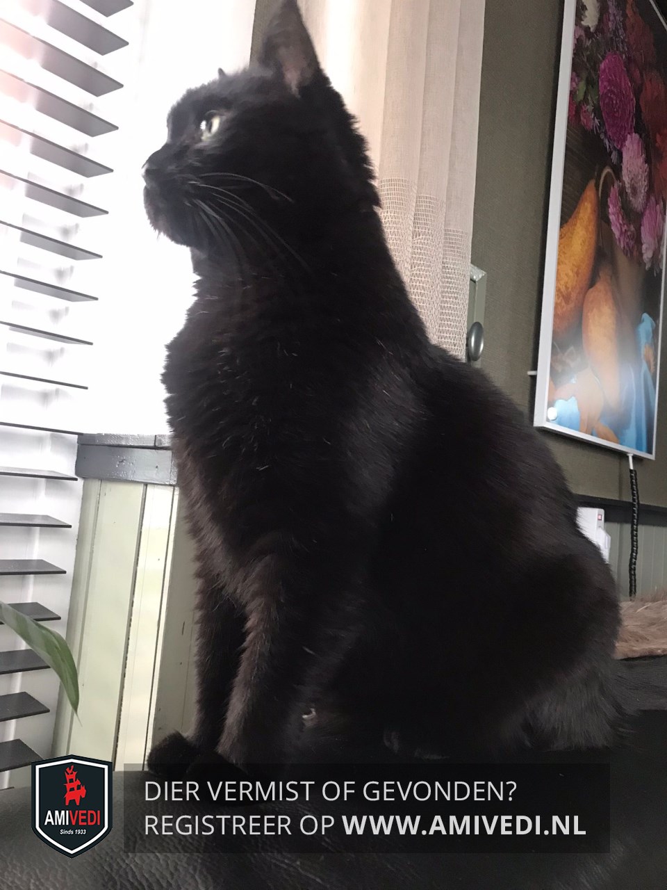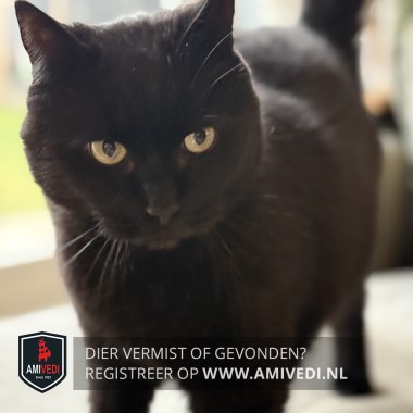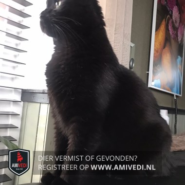 | Signalement | Grote, gecastreerde kater in zwart. Wat losse witte haren in de vacht |